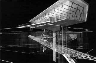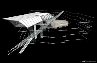 個構想利用一個鐵製長廊構造, 以對角的切割的方式貫穿這個 舊國會大廳形成主