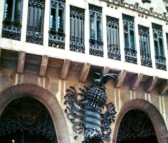 高第在奎爾宮殿上將新藝術風格的鑄鐵材料充份發揮,無論是在窗戶開扣部與大門入口處都能見到帶有律動感的元素。屋頂平台上矗立的尖塔更是著名的高第造型元素之一,這些屋頂突出物所做的裝飾物上,也都具有排氣與通風的實際機能。