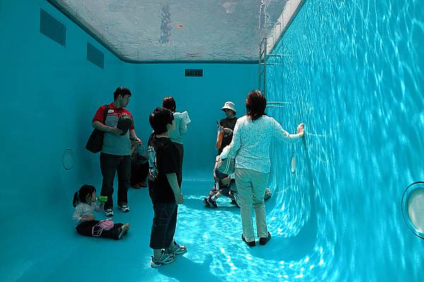 金澤二十一世紀美術館的建築設計概念便隱含在這座游泳池中,而泳池則投射了美術館對當代藝術的看法。美術館的泳池是荒謬幽默、超越現實的,也是參與互動、流動變化的。