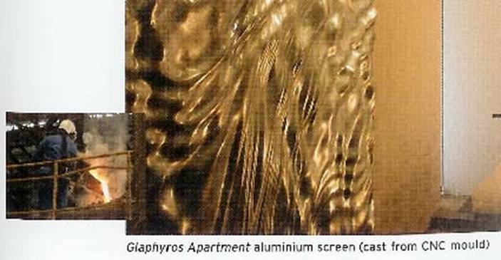 completed in 2003, features an 8-by-6-foot aluminum screen whose form is based