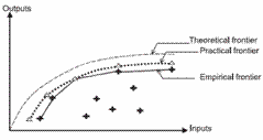 ¸¨©óempirical frontier ¤WªºDMU§Y¬°®Ä²v1¡A¤U¤è«h¬°®Ä²vÈ< 1¡A«h¬°µL®Ä²v³æ¦ì l