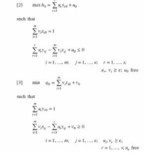¬O¤@ºØ§Q¥Î½u©Ê³W¹º¼Æ¾Ç¼Ò¦¡¡C§Q¥Î¥]µ¸½uªº²z½×»P¢Ôarrel(1957)©Ò´£¥Xªº½T©w©ÊµL¥À¼Æ°Ñ¼Æªk¡Aµo®i¥X¤@ºØ¥Î¨Óµû¦ô¦h¶µ§ë¤J¶µ¥Ø»P¦h«²£¥X¶µ¥Øªº¬Û¹ï®Ä²vÈ¡C¥]µ¸½u¬O¢Ò¢Ó¢Ïªº®Ä²vµû¦ô¼Ò¦¡ªº²z½×°ò¦¡AÂǥѪ½½u©Î¦±½u±N¦³®Ä²v³æ¦ì³sµ²°_¨Ó¡A¹F¨ì¬f©Ô¹Ï³Ì¾A¹Ò¬É¡]¢Þ¢í¢ú¢í¢ü¢÷¡@¢Ý¢ø¢ü¢ñ¢õ¢é¢ô¢ñ¢ü£B¡^¡A°ò©ó¬f©Ô¹Ï³Ì¾A¹Ò¬É¤§®Ä²vÆ[©À¡A¥un¨D±o¥Í²£Ãä¬É§Y¥i±N¹ê»Ú¥Í²£»P¥Í²£Ãä¬É¥[¥H¤ñ¸û¡A¶i¦Ó¿Å¶q®Ä²v¡C l
