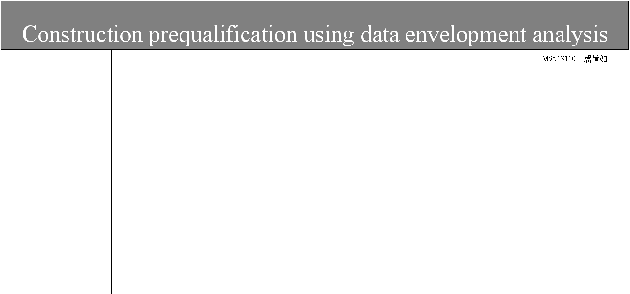 Conclusion ¤å³¹¨Ó·½¡G McCabe, B., Tran, V., Ramani J,(2005). Construction prequalification using data envelopment analysis.