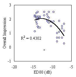 Fig. 2 Overall impression as a function of ED80. A 2nd polynomial fit can be derived if an outliner(x) was excluded