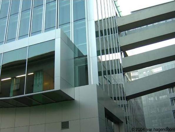設計議題:法令規定須蓋到四個角,表現荷蘭的寬廣 形式手法: Koolhaas以常見的中庭和內院提案,他創造獨立聳立單一的27*27公尺立方體的建築,包圍在細長L形側翼裡面,而兩個空間由五個垂直重疊的橋連接,因此成形狹窄但仍然具有滿足四角落都要建造的需求的完全開放庭院。稱之為荷蘭嘲諷也罷,但此都市解決方案,同時具有複雜和奇特的特性。此手法也分隔了辦公與住宅區域,住宅處於L型的側翼,辦公則在立方體內。
