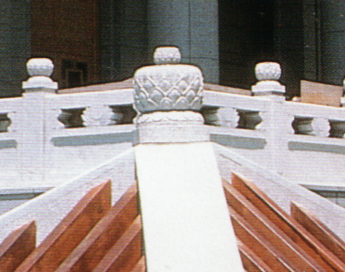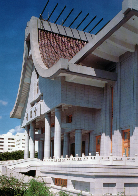 靜思堂的入口意象延續「靜思精舍」的入口造型符號,希望以相同的符號增加慈濟人的辨識與規屬感,並且進而發展成三疊屋頂之造型語彙,象徵佛教三寶---佛、法、僧之意象,增加屋頂語彙的意涵。