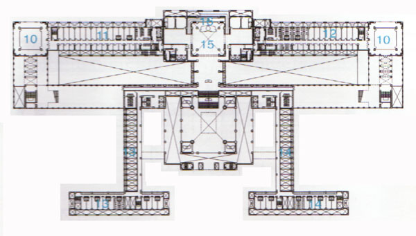 10 禪堂 11 女眾宿舍 12 男眾宿舍 13 女眾寮房 14 男眾寮房 15 化身佛 16 繞佛坡道