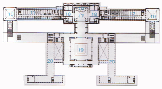10 禪堂 11 女眾宿舍 12 男眾宿舍 17 報身佛 18 佛殿 19 下禪堂 20 屋頂避難平台