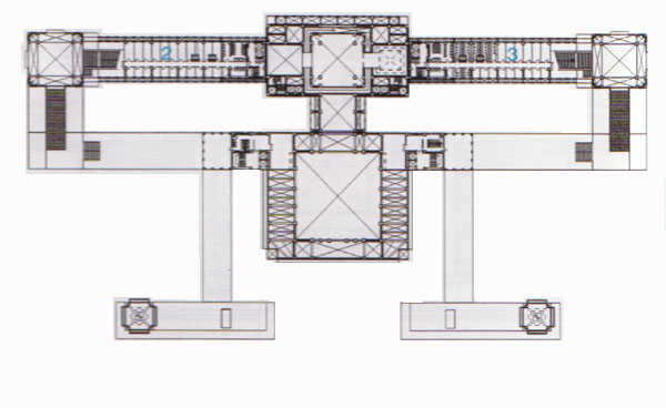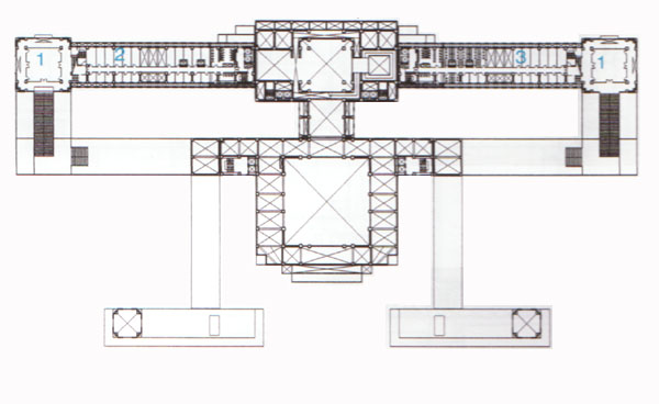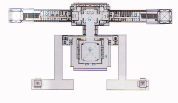 1 禪堂 2 女眾宿舍 3 男眾宿舍 4 迴廊 5 法身佛 6 上禪堂 7 天梯