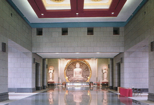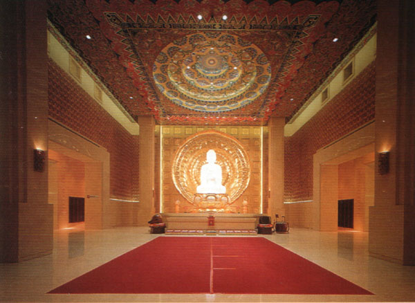 以金黃色系,富麗堂皇的天花板彩繪及蓮花座來表徵圓滿報身的莊嚴功得性。 |