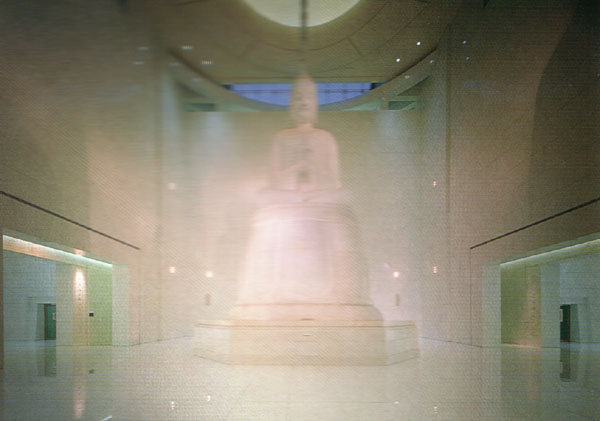 整層殿堂,包括法身佛、配屬的文殊菩薩、普賢菩薩、牆壁、天花板、地面、背光全都是純白色的,以白色代表法身清淨。