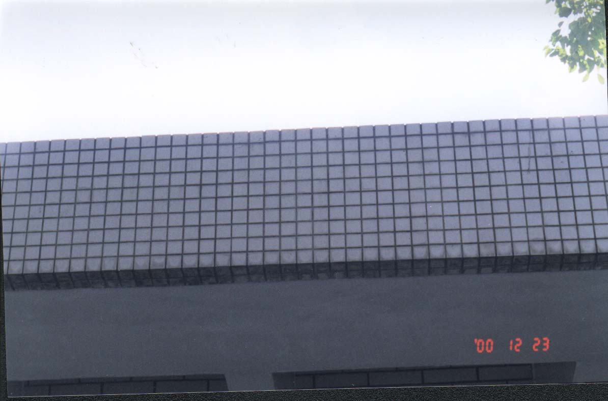 屋頂使用白色小塊磁磚,並以簡單的 砌法,與立面所呈現多元的砌法形成 對比,已增加立面的豐富性。 |