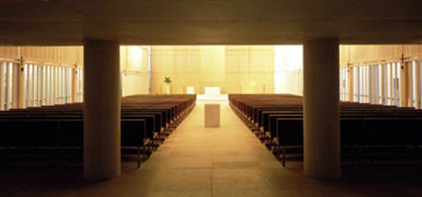 建築師的基本想法是希望降低教堂與環境產生封閉的感覺, 創造一種開