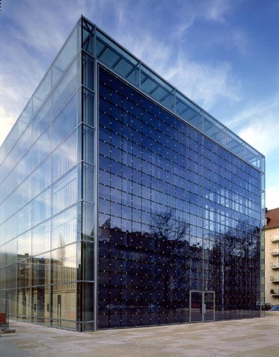 種給人乾淨簡單(極簡)的感覺; 玻璃的外表包裝下充滿後現代的科技感, 白天時與