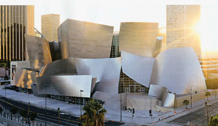 迪士尼音樂廳不鏽鋼立面常隨陽光而變化顏色