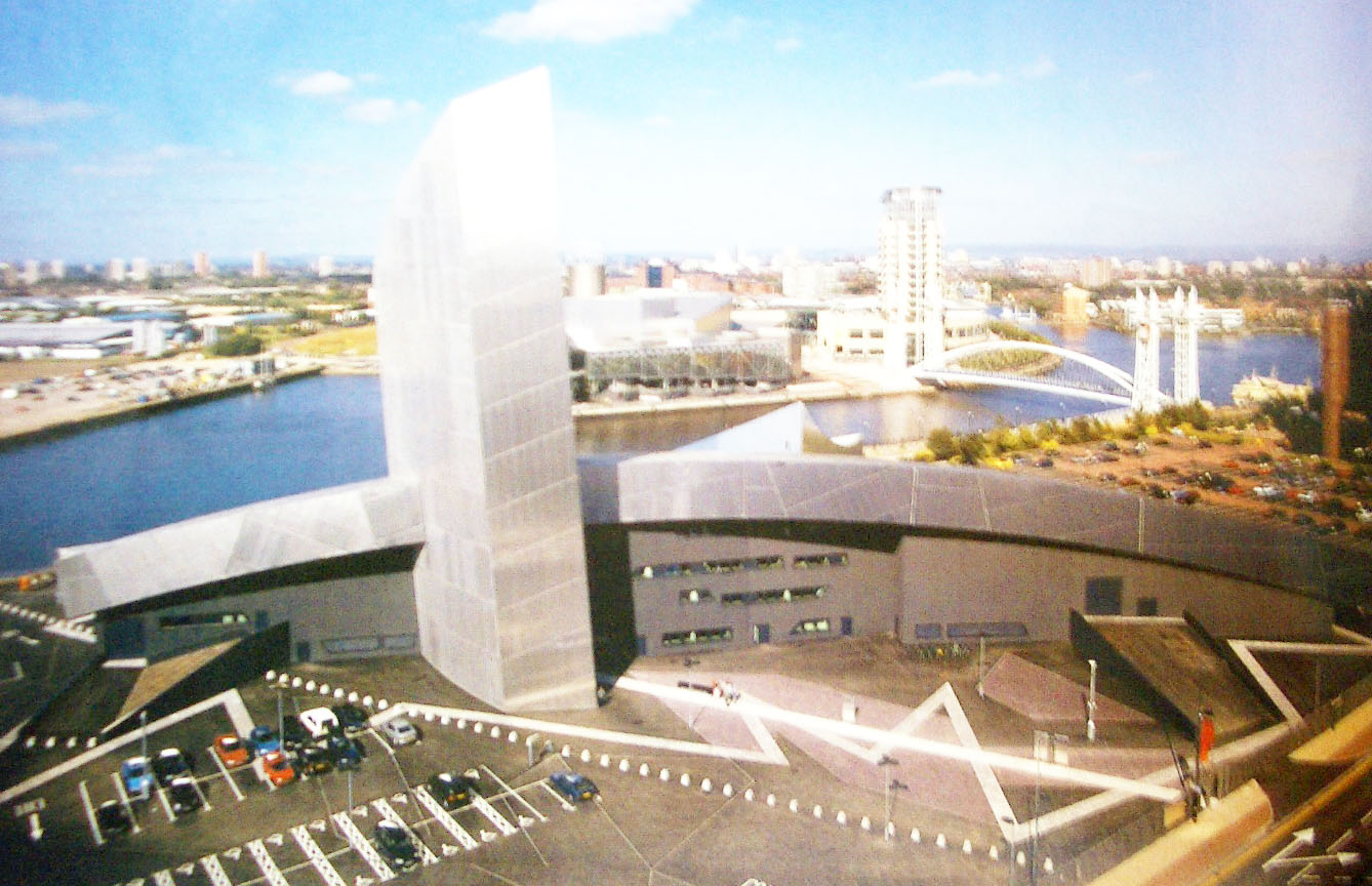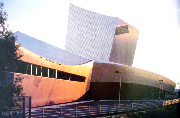 整棟建築物並非由理性思考所架構,外觀上則是利用如雪梨歌劇院般的曲線表面,和不規則幾何造型,呈現出 libeskind 想要的表達的隱喻。建築概念由三片充滿意象的板塊構成,分別象徵陸地、天空與海洋;塔是空氣碎片、大殼是陸地碎片、餐廳部分是指水的碎片。