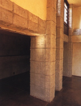 Derby House的結構做法同時存在著。兩棟建築物Wright使用穿孔方塊來裝飾表面,用灰泥粉飾木構架結構──結構較不複雜因而較便宜,甚至比他父親用混凝土方塊建造來得便宜。一個兩個樓層的空間,用混凝土樓板、混凝土方塊細部來完成畫廊的內部。一端是廚房,有一個壁爐位在那裡,位在一個小浴室和陽台的上方。