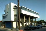 Schindler's ªº¿ìªkn´£¤É¶W¥Xµó¹Dªº©Ð¤l¡C ¨Ã«D¨Ï¥Î stilts ©ÎªÌ pilotis , ³oÓ«Ø¿v®v³Ð³y¬°°ò¦¥H¤Ó¦Û¥Ñ¯¸¥ßªº¨ãÅ鮨¬[ªº¤@Ó¬[ºc°©¬[,