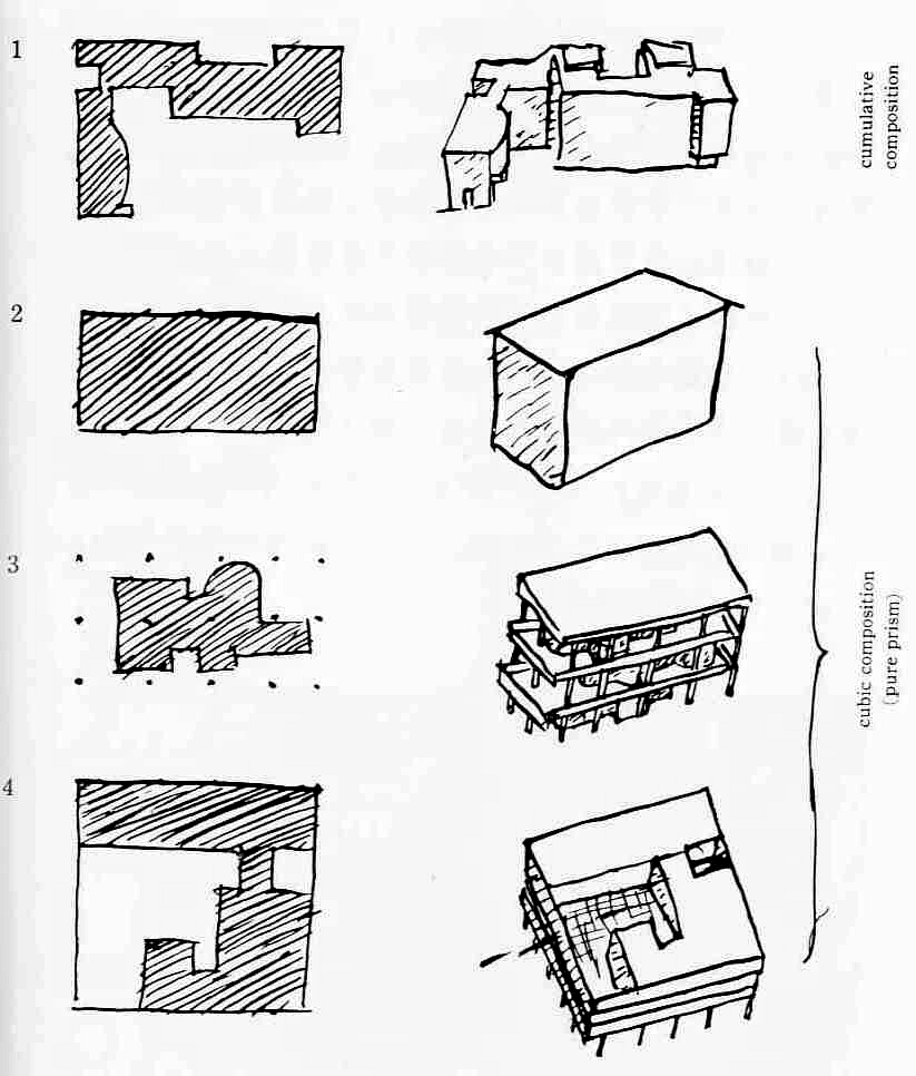 : 以拉窗形成一條很長的水平長窗適應幾何學在比例權衡邏輯的需要,更造成視覺的統一性,而且是構 5、自由立面 : 使幾何造形立面得以自由塑造。 然而薩瓦別墅決不是柯比意建築理論的理性發展與釐清而已 。左圖是勒 · 柯比意自己對這四棟作品所做的草圖 : 1、羅許住宅 2、嘉榭住宅 3、司徒加特住宅 4、薩瓦別墅 ; 顯示了薩瓦別墅在這些作品中的層級。薩瓦別墅是他一生作品中不可或缺的部份,同時在建築裡輾上也與他前後期的建築物型態有著密切的關係。在這些作品中,他以不帶感情的邏輯來追求其對現代建築的觀察,那就是 : [ 住宅應該是提供新的流浪者-現代都市人-一種自由且富彈性的居住容器。] 這理論的根源是多方面的,與社會哲學有關,同時也是要為所有的機械時代社會空間構築活動提供一個統一的理論體系。薩瓦別墅的自由頻面所表現的空間目的是:[提供一個場所,使人可以在開放的空間中鬆弛緊張的精神,同時也是對生活方式所做的一種革命性變革。] 伊動建築可被視為一組精心經營的元素,勒 · 柯比意處理這些相關元素所用的ㄧ個方法是 [ 規線 ] 。他描述 [規線] 如下:[是一種精神秩序的滿足,引導追求富創意而合諧的關係。他賦予作品以韻律感。在此規線是有如數學般精確的實體,重新肯定了秩序的完美性。規線的選擇決定了作品的幾何型式,也因而決定了其``基本特質``。選擇規線士林敢表現的決定性時刻,也是建築至為重要的運作之ㄧ。]
