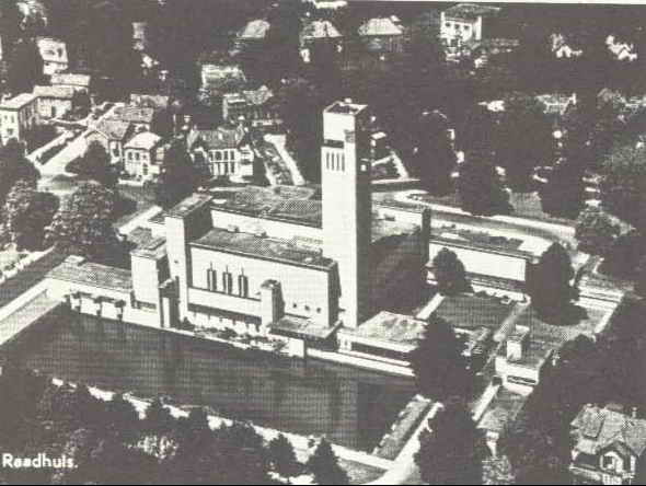 Hilversum 設計城鎮門廳被描述”友好的尊嚴大氣”,它在庭院周圍被簡單的安排,不對稱的立面,依比例決定對他們的不同功能。