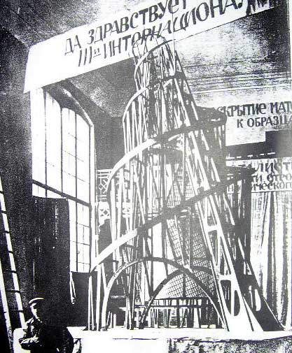 Vladimir Tatline的第三國際紀念碑,可稱為當年時代精神的紀念碑。與其說他是一個工程師 ,還不如稱他為偉大的藝術家。他所設計的此一紀念碑,實為技術和藝術的總合。他試圖把內部和外部通融匯合起來。由兩個圓筒組成一個金字塔,採用鐵和玻璃兩種材料築成。圓筒的部份以各自不同周圍和各自不同速度的回轉,組成一個螺旋狀高塔。
