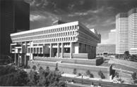 市政廳的位置是選在舊市中心的衰敗區,該區破舊髒亂,是原市政府所在地區之一角。市政廳在都市景觀上所扮演的腳色與雛型大致確定。貝聿銘事務所的理想規劃裡為一幢大約