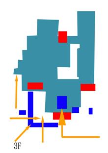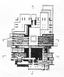 底層平面由簡圖看出垂直動線之對稱關係,南邊主要入口之許多階梯處為方便民眾使用舉行活動與發表見解之區域。