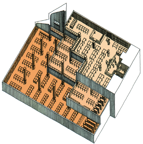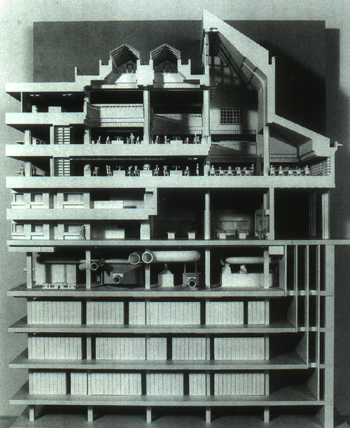 | section model 地下層除了管線設置外,也作為主要的藏書處 | |