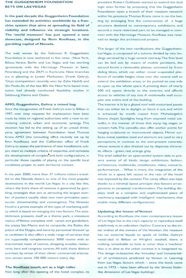 (1)CULTURAL, URBAN AND ECNOMIC SYNERGY - (2)GUGGENHEIM FOUNDATION ¡V HERMITAGE(ST PERTERSBURG), ZKM (3)HOTEL VENICE-100,000 VISITORS/DAY THEME PARK
