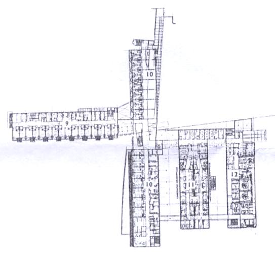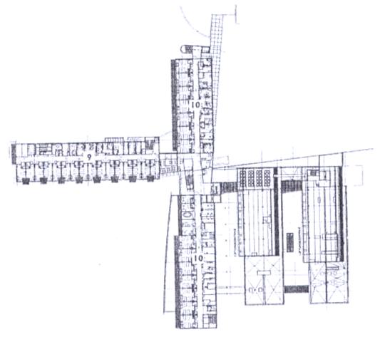 與柱系統分離的兩條斜曲路線:西北:from地下室停車場