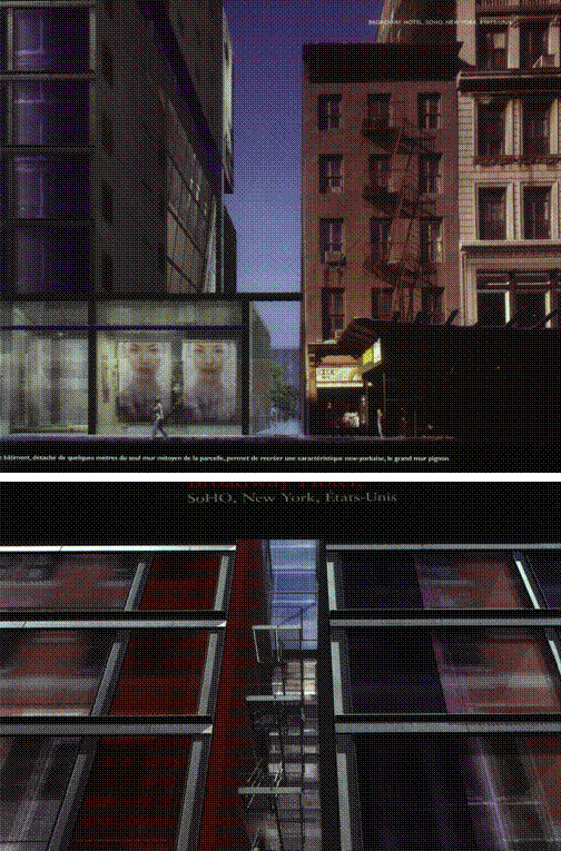 (1)Exposed sides on three fronts ¡V four sides, independent block,12F/2F (2)Glass skin- contrast to privacy rule of hotels. Play on the glass used, between the appearance and disappearance of its materiality, which adds on an erotic touch to the architecture. |