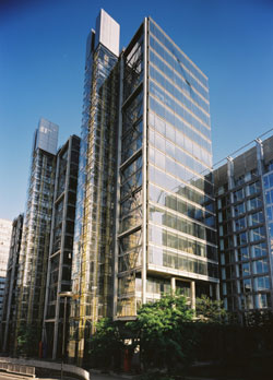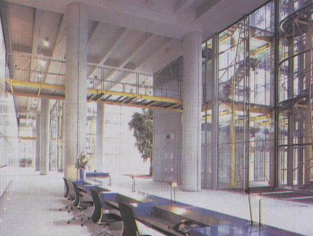 設計說明: 建築物位於Wood Street與London Wall兩條街的交叉口。 為配合街道建築高度的尺度,整棟建築物分為三個不同高度的段落--10F、14F、18F層層退縮。每個段落開始更配置退縮的平台,除縮小尺度外,更提供一個戶外休閒空間。 面對Wood Street (東向)的主要入口,從立面上看來只有8F(實際上後半部為10F),充分配合一旁的建築尺度。 整個建築的概念,是以斷開的量體、輕質的玻璃立面來減低量體的壓迫感。 大面開窗的玻璃,配合遮陽的設計,除降低人工光源的使用外,更提供中央區域的充足採光。 |