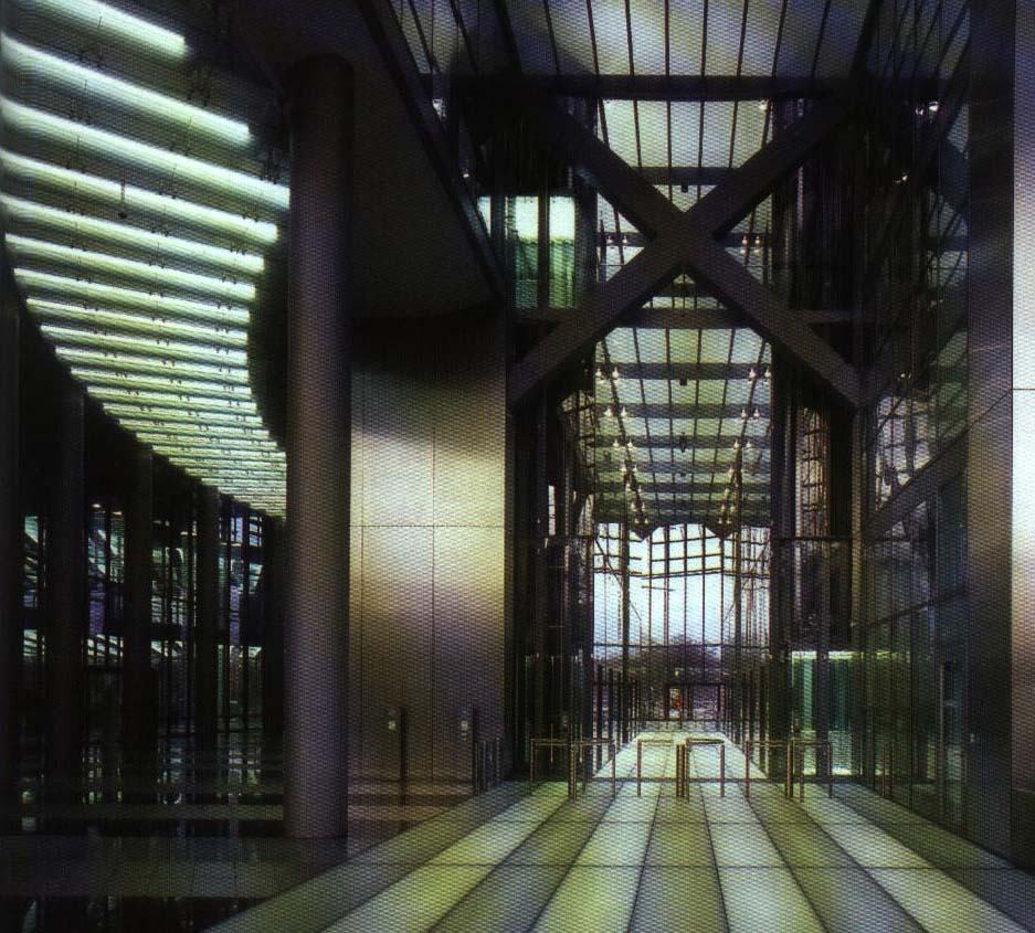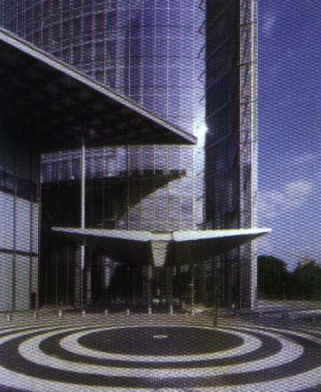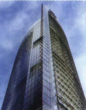 1.新建築如何展現生態與人道原則。 2.一個橢圓對剖、在微略錯開,避免相對。 3.每九個樓層有一個玻璃樓層的空中花園,作為交流的樓層,以及垂直運行的天橋。 4.銀行的玻璃在空中花園之中,以提供景觀及方向。 5.建物外觀有兩層的玻璃、介於兩層玻璃之間有 自動控制的百葉窗。 6.運用誘導式系統-兩層玻璃間的空間作為調節室,引導新鮮空氣流動及調節室內溫度。 7.廢熱氣的循環利用、空中花園調節排氣。