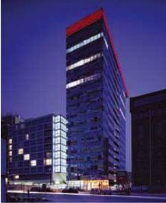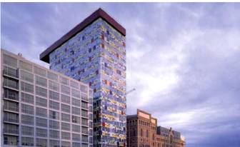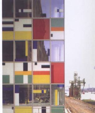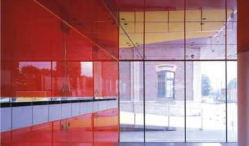 立面以彩色的玻璃來遮蔽內部的結構 (17種不同性質玻璃)