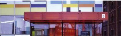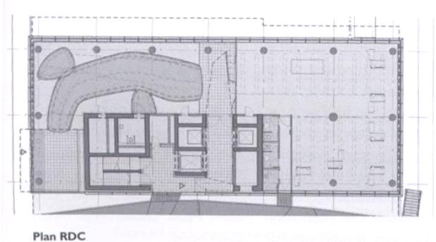 箭頭:主要入口 粉紅色區域:lobby 綠色區域:service core