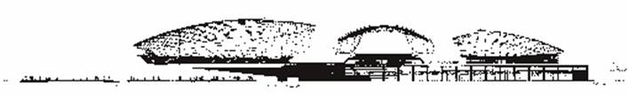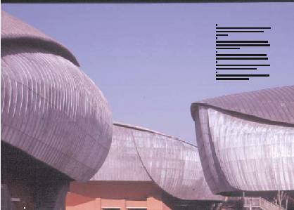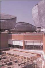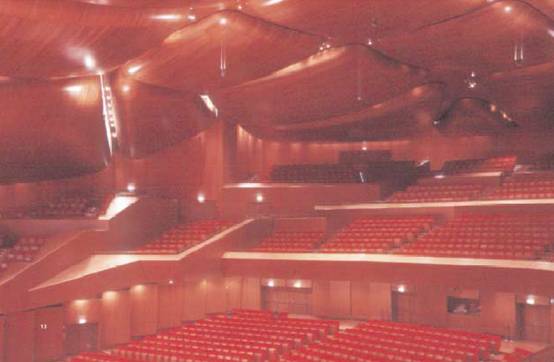 設計: 1. 市民廣場-戶外大劇場採半圓形(風車形),三個大階梯通向三個大演奏廳,商店及博物館 2. 飛機形狀彎曲設計方法 tordial plans, tordial geometry (1)一個軸線上有不同形狀的封閉曲面 (2)高科技-鋼構及玻璃 (3)實驗性-依機能不同個別設計 音響 3.造形來源: 屋頂-海龜(tortoise shells) 昆蟲甲殼(insect carapaces) 日本武士甲冑(armour of samurai warriors) |