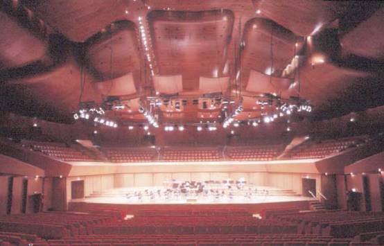 機能: 1..三個演奏廳 東面-交響樂及大合唱2756人 中央-芭雷及現代樂1273人 西面-室內樂及實驗樂700人 1. 露天戶外劇院-3000人 2. 古跡-古住宅在東面及中央大廳間 4.古蹟博物館及商店位於階梯下方 |