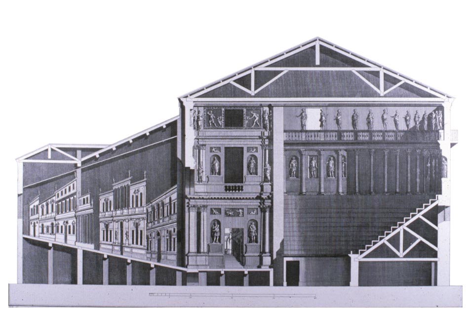 分支街道舞台的布景採用逐步退縮的空間手法,呈現更具遠近透視效果的場景