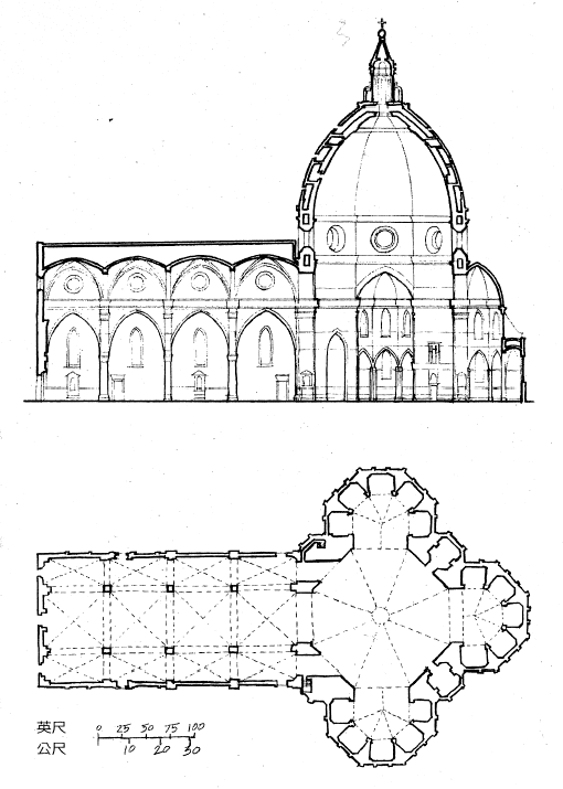 百花聖母大教堂剖面及平面