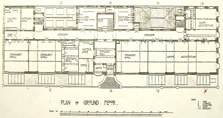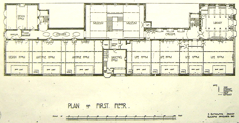 格拉斯哥學派(Glasgow School) 繼承「美術與工藝」運動與新的住宅觀念,是建築唯一「有機體」,而其外在的表現則由內在的需求而來。延續John Ruskin的「高直復古主義」思想與Voysey的自然有機原則,反對以鋼鐵和玻璃來完全取代磚、石在建築物實牆的比例,融合樸拙和裝飾,將自然元素的形式表現在建築的精美實用本質。 |