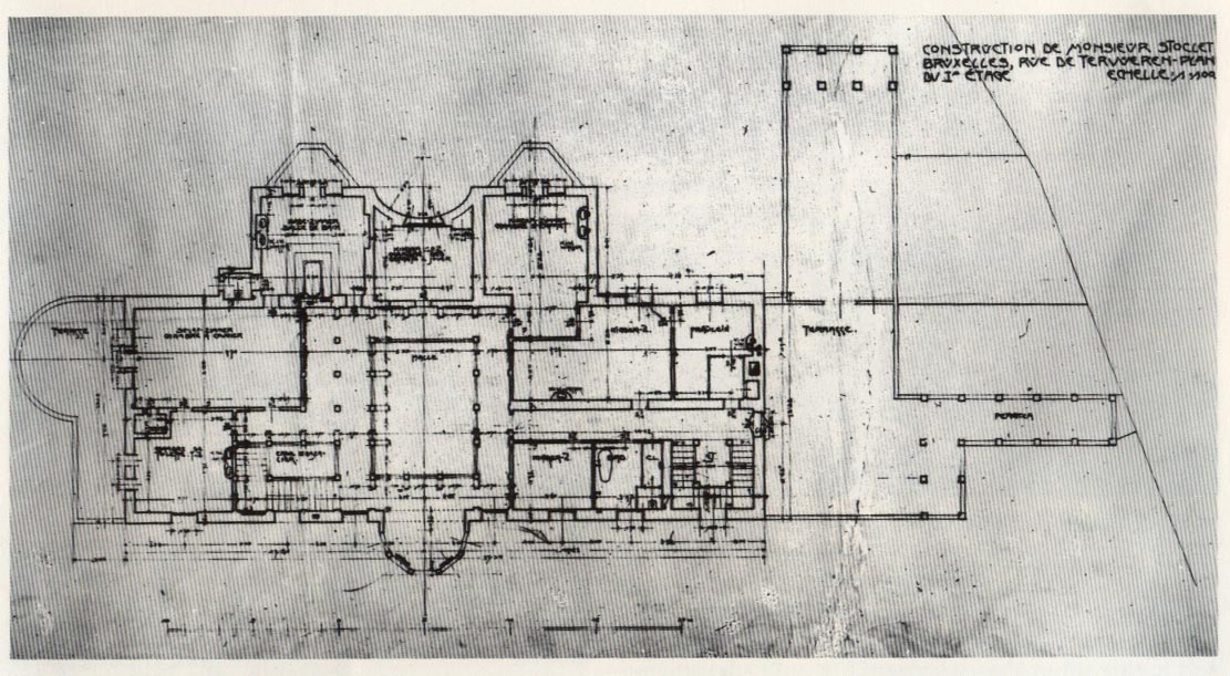 無論平面上或立面上都可看出古典中軸對稱的整體架構,但藉由一樓平面的延伸以及立面上的高塔,則隱約可讀出內部機能優先的考量。一樓東面的延伸主要是車庫及其附屬空間,在建築主體中,靠近車庫的東廂是佣人管家所使用的服務性空間,而從入口延申出的長廊以西,則是主人生活起居,招待賓客的場所,一樓西面延伸出的部分則為家庭劇院的小舞台及其附屬空間,二樓則完全配置屋主及其家人的臥室。整個平面上可看出建築師藉由東西兩座樓梯將主副關係界定出來,而立面上也將第二(副)樓梯轉化成為高塔,使其在造型上不至於陷入復古浪潮的迷思。