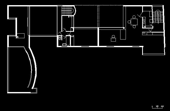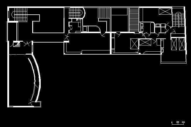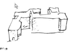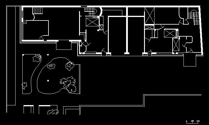 因為基地是一狹窄的基地,在分析基地的軸線和道路的軸線間的關係後,最後決定置配建築物時以採用L型來將基地給包圍起來。