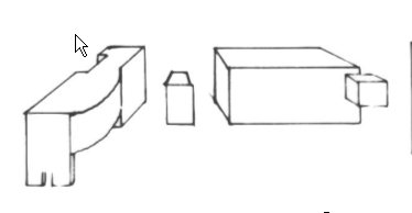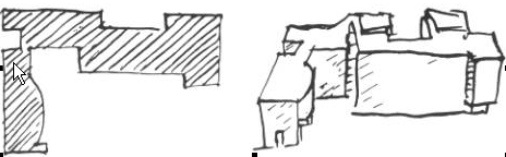 (3)左邊的造形基本上也是立方體形,但卻加以巴洛克式的膨脹而使牆面彎曲,使靜態的立方體構成中帶進了動態的造形因素。