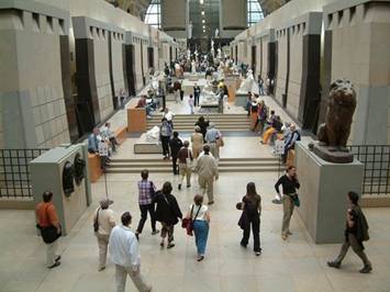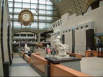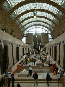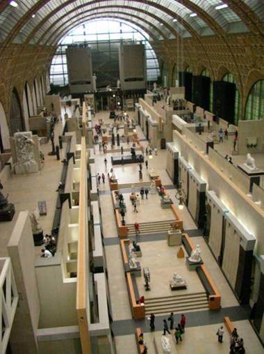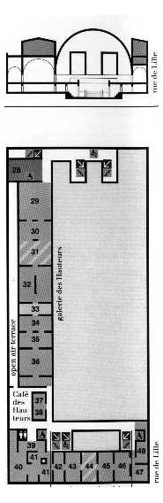 展覽空間與印象派上層展覽空間的剖面,可看見奧蘭蒂在中央軸線底建造了兩座塔作為收頭