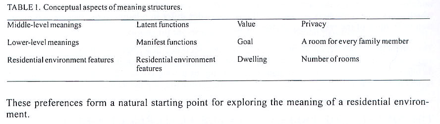 高層級 : 居民的世界觀.思考系統概念 中層級:潛在的.身分.權力 低層級:外在的.私密性.可及性.親密性