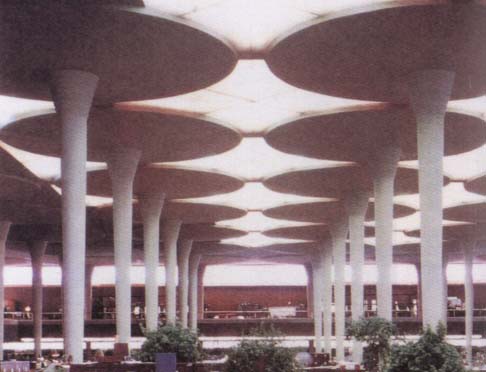 此建築最大的特色就是結構是由蕈狀型的柱子堆疊而成,最下面一層是停車場,中間是辦公室,最上面則是大廳。而蕈狀柱所沒有連接到的地方則裝置天窗,讓陽光能夠投射下來。