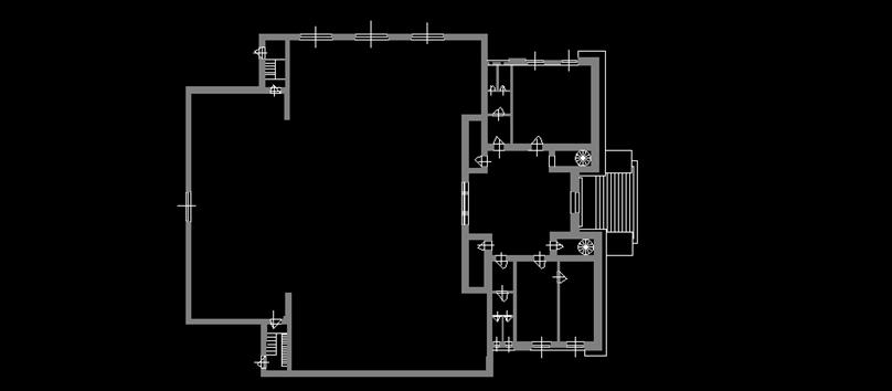 文字方塊: 平面為十字型。這棟建築物佔地1000m2,有一個顯示中心的平面。Olbrich利用方形為最基本的元素存在於入口跟展場空間形成的十字形平面。平面完全決定這棟建築物的外觀。