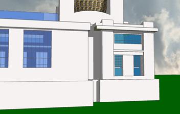 文字方塊: Olbrich 設計這棟建築物花了十個月的時間,持續修改他的設計以配合需要,同時不斷去檢討,修改的同時,這棟建築物的基礎在1984/4/28開始建造,在六個月後1898/10/29完成