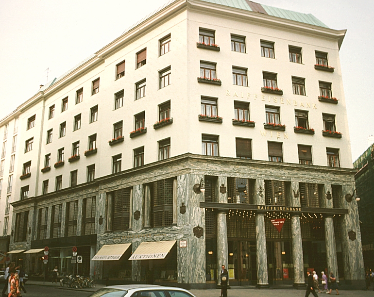 這棟附有店面及公寓的建築是受到Goldman和Salatsch:的委託,無論如何,這種形式選擇坐落的位置是倍受爭議的,不僅僅是因為這棟建築是位於舊的維也納的市中心環繞著傳統的建築,而且還正面對著皇家貴族的入口大門,在這棟建築開始建造之前就常常被批評它的矛盾,較低一層的商業店面適用大理石為材料,以古典柱式及雄偉的嵌壁式入口與較高層裸露灰泥牆、缺少裝飾、樸素未經模矩的部分形成強烈的對比。