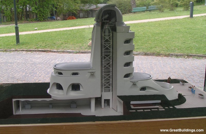 建築師: Erich Mendelsohn 所在地: 在德國波茨坦附近。 時間:1919至1921。 建築式樣:天文台、研究室 構造系統:磚石構造 當地氣候:溫和 座落位置:郊區 建築風格:早期表現主義風格 建築形式:曲線流線型造型 設計理念: 愛因斯坦天文台是孟德爾頌愛因斯坦天文台是孟德爾頌所設計之特殊建築型態。孟德爾頌以強調表現主義,抽象的構圖與藉由視覺傳遞表現性想像畫。在白色建築形體下,包涵著孟德爾頌對於 愛因斯坦擁有極高天文、物理智慧的觀察與推崇,導引著他在構思的同時,以打破建築物稜角剛硬的感覺,進而以具延展性,圓滑性的曲面與弧線作為收飾視覺觸角 的方式,採用圓頂的屋頂概念,意指宇宙的無窮,混合機械學的元素, 例如被扣緊到與牆分離的柱之陽台建築形式,使建築物充滿創意般的趣味性。
